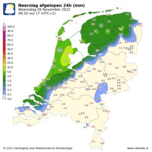 In de avond en nacht flinke opklaringen met een minimumtemperatuur van ca 5 graden.