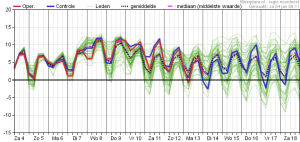 Grote kans (70%) op een rustig weertype met weinig neerslag en temperaturen aan de hoge kant voor de tijd van het jaar.