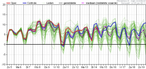 Grote kans (70%) op een rustig weertype met weinig neerslag en temperaturen aan de hoge kant voor de tijd van het jaar.