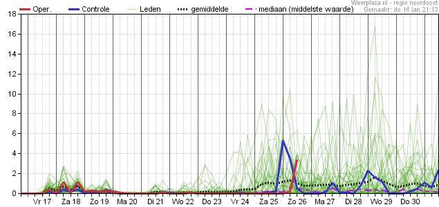 Vrijdag waarschijnlijk nog droog, daarna neemt de wind toe en ligt de dagelijkse neerslagkans rond 60%. De kans op temperaturen die enkele graden boven normaal liggen is groot (ca. 70%).