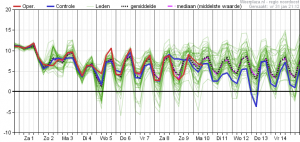 Overgang naar een wisselvallig weertype met een dagelijkse neerslagkans van rond 70% en van tijd tot tijd veel wind, met een aanzienlijke kans op zware windstoten. De eerste dagen van de periode ligt de temperatuur rond de normale waarde voor de tijd van het jaar, op de langere termijn is de kans op temperaturen boven normaal groot (70%).