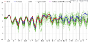 Zeer grote kans op voortzetting van het wisselvallige weertype met grote neerslagkansen, temperaturen boven normaal en van tijd tot tijd veel wind, met een aanzienlijke kans op zware windstoten.