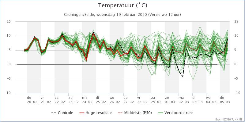 Grote kans (80%) op een aanhoudend wisselvallig weertype met soms veel wind, temperaturen komen geleidelijk uit op normale waarden voor de tijd van het jaar.