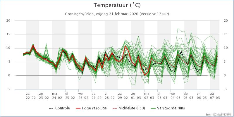 Wisselvallig, aanvankelijk met temperaturen boven normaal. In de loop van volgende week geleidelijk iets minder zacht.
