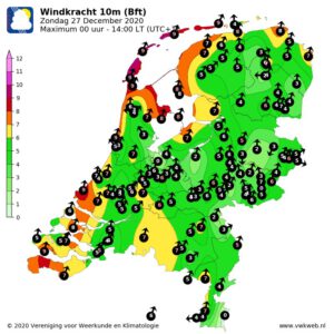 De kans op een (vrij) koud weertype is groot, zo’n 70-80%. De dagelijkse neerslagkans neemt toe naar 30-40%. Eventuele neerslag kan daarbij in de vorm van (natte) sneeuw vallen.