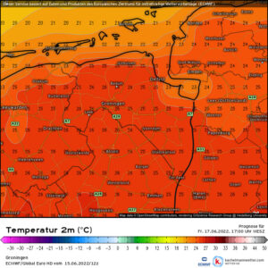 Morgen beginnen we met opnieuw veel bewolking. In de middag geleidelijk steeds meer zon door en wordt het zomers warm met ca 25 graden. De zwakke tot matige wind 2 – 3 Bft komt uit zuidelijke richtingen.