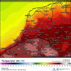 Vandaag zijn er wolkenvelden en zon en het blijft overwegend droog. Het wordt zomers warm met ca 25 graden. De zwakke tot matige wind komt uit het zuidoosten tot zuidwesten 2 – 3 Bft.