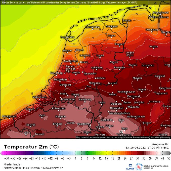 In de avond en nacht vrij helder met minimum temperatuur van ca16 graden.