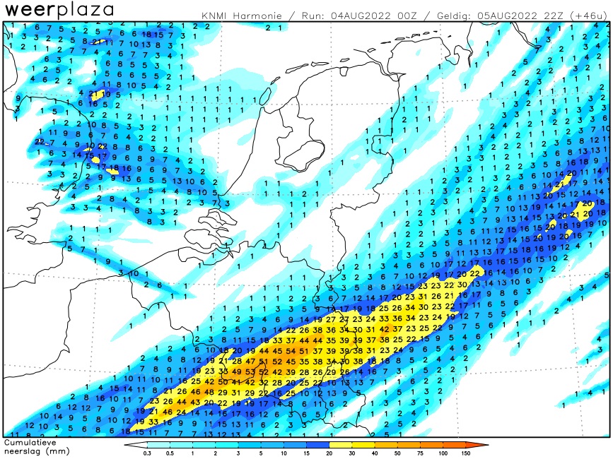 In de avond en nacht flinke opklaringen en droog met een minimum temperatuur van ca 9 tot 11 graden.