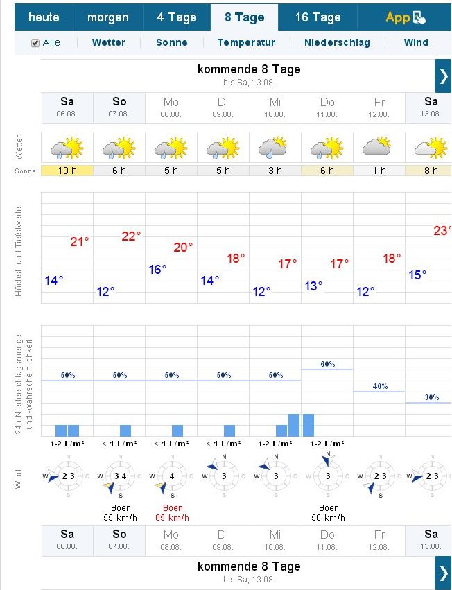 zaterdag 13 augustus tot en met zaterdag 20 augustus