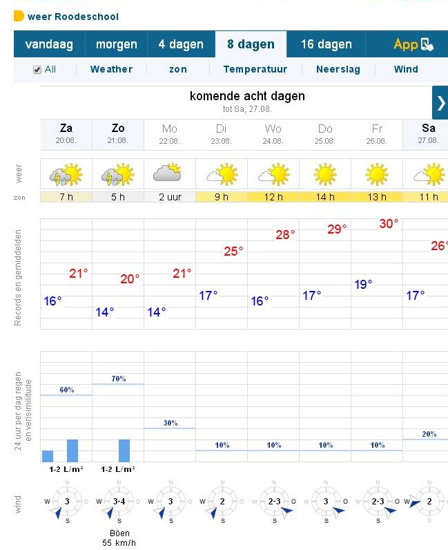 zaterdag 27 augustus tot en met zaterdag 03 september